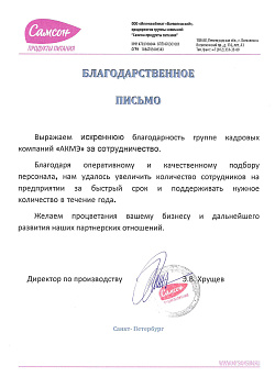 Группа компаний АКМЭ является признанным лидером кадровой индустрии и занимает значительную долю рынка аутсорсинга и аутстаффинга персонала. На протяжении 20 лет мы повышаем эффективность бизнеса клиентов, оказывая профессиональные услуги высочайшего качества. Нам доверяют решение своих задач многие федеральные и всемирно известные корпорации. Если Вам нужен надежный партнер в области предоставления рабочих сотрудников – мы будем полезны Вашей организации.